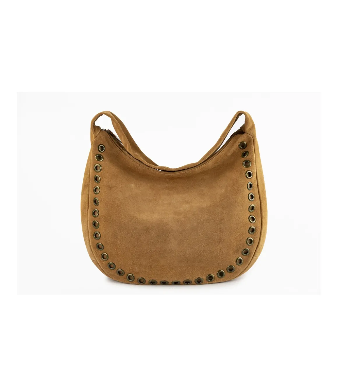 WE LOVE SUEDE!, ligero con estructura blanda. Interior forrado en mezcla de poliéster y algodón con acabado mate y compartimento abierto interior rematado con un ribete en piel; bolsillo interior con cierre de cremallera.