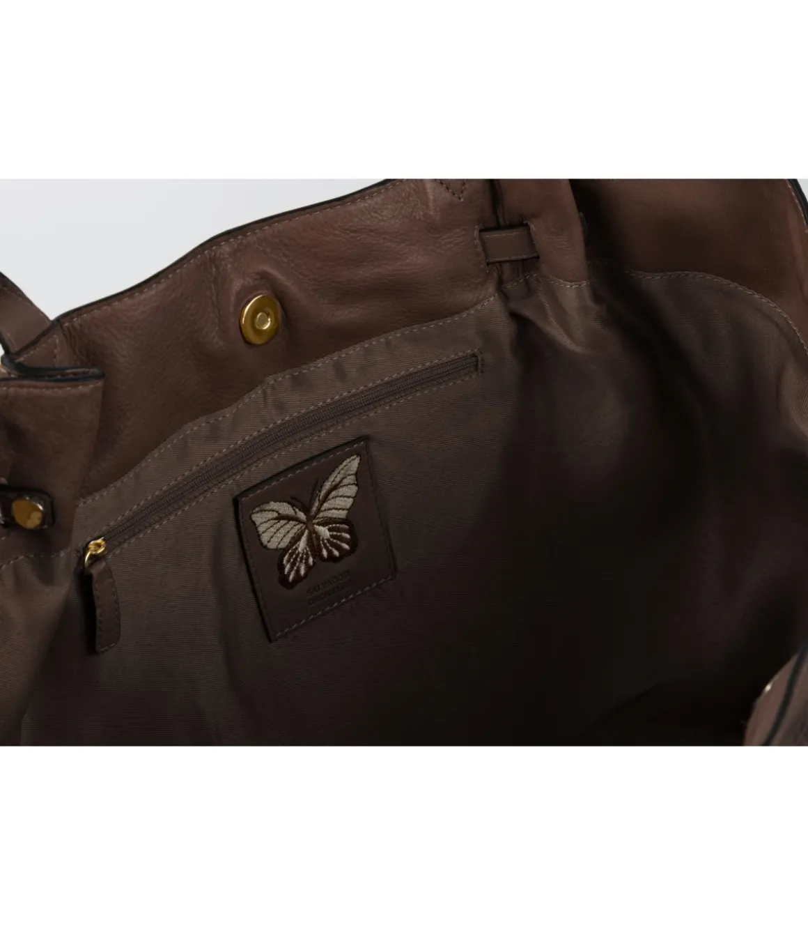 Bolso muy funcional, elegante y práctico. Interior forrado en poliéster brillante a tono, detalles de logo grabado con bordado de mariposas. Compartimento interior rematado con ribete en piel y bolsillo interior con cremallera. Un clásico de Salvador Bachiller ideal para tus office looks.