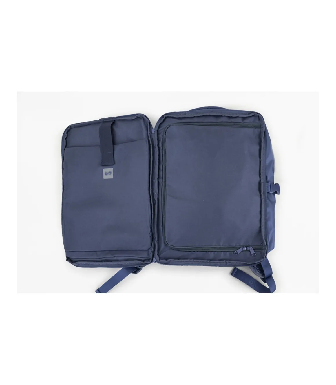 Estructura blanda y ultraligera muy resistente. Interior forrado con poliéster a tono con acabado mate. Compartimentos interior acolchado para ordenador de hasta 15″ y amplio compartimento con cierre de cremallera para la ropa.