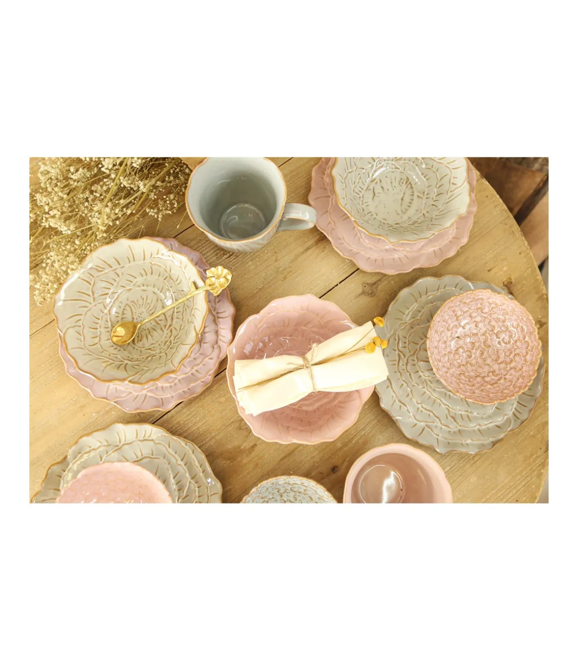 Esta colección cuenta con varias piezas a juego en diferentes formas y está disponibleen gris y rosa. Perfecta para dar es toque original, sofisticado y de color a tus mesas. ¿Te atreves a combinarla? Estamos deseando ver que mesas tan bonitas creáis.