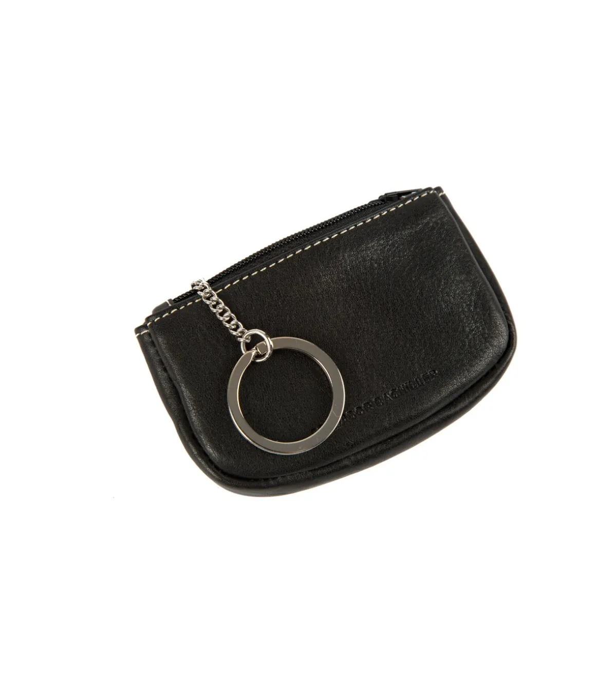 Monedero-llavero de caballero elaborado en piel vacuno de primera calidad. Tacto muy suave, con dos amplios departamentos para monedas y una cadena con aro para las llaves.