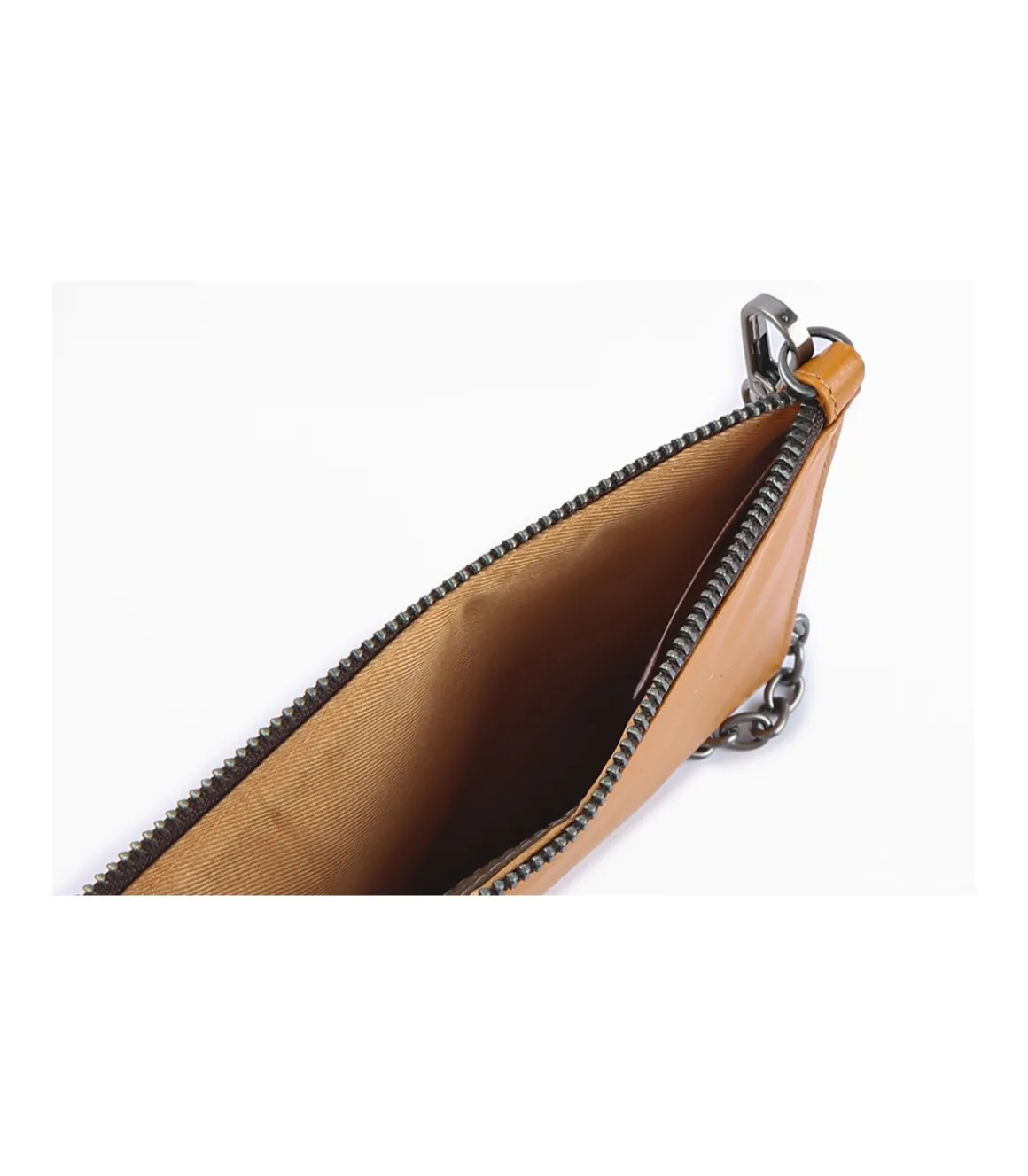 Bolso sencillo plano. Interior forrado con forro de poliéster brillante a tono.