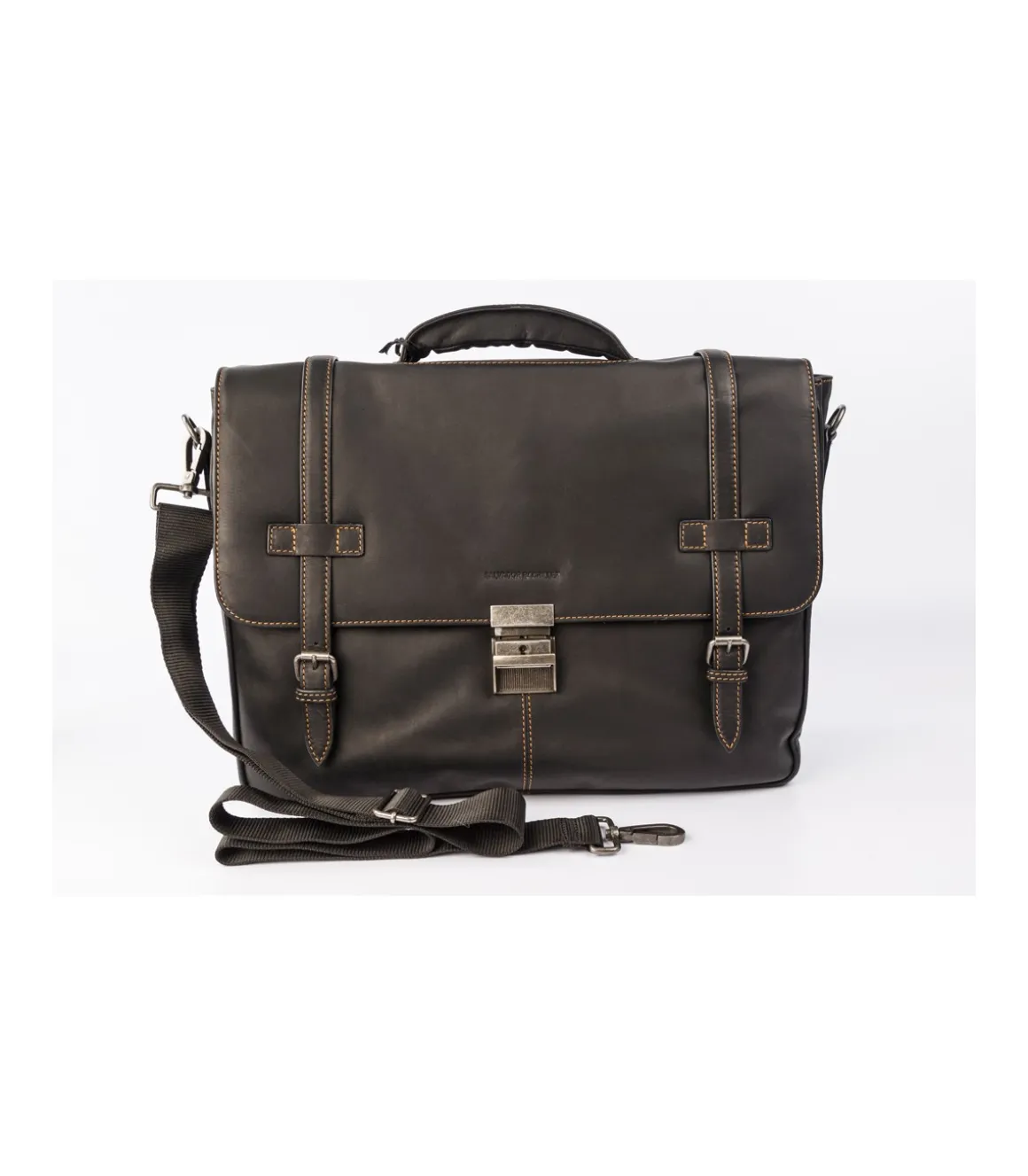 Cartera grande porta documentos fabricada en piel vacuno hidrófuga e impermeable. Un diseño cómodo, con cierre de cremallera y solapa con doble corchete y cierre metalico de seguridad. Amplia capacidad interior y varios departamentos de los cuales uno acolchado para proteger el ordenador o tablet. Asa de mano reforzada y asa bandolera ajustable. Bolsillo trasero y apertura total que permite colocar el porta documentos en el asa de una maleta y viajar cómodamente.